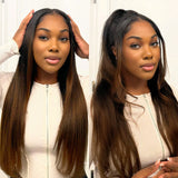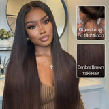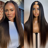 Item:V Part Yaki Straight Wig Ombre Chestnut Brown Lifesaver Glueless Human Hair Wig