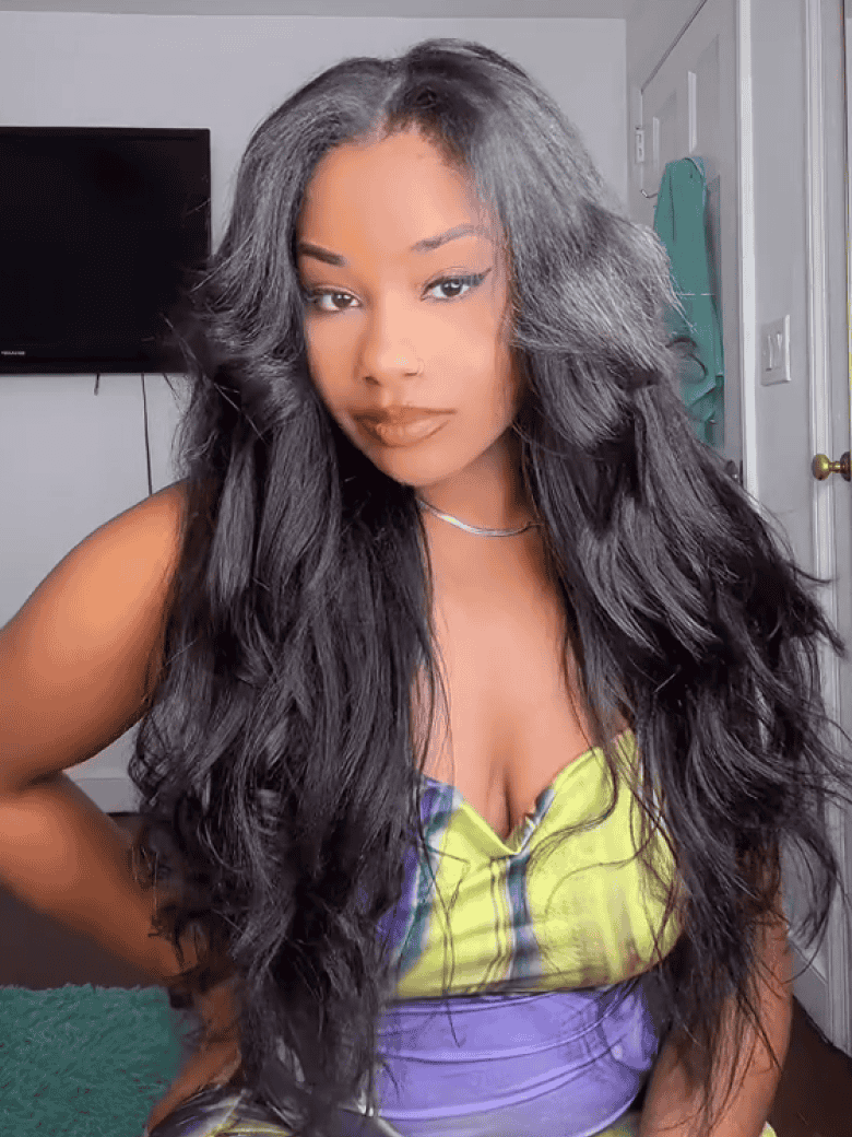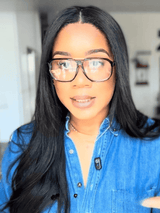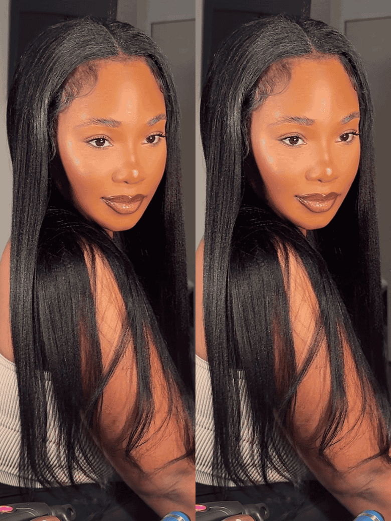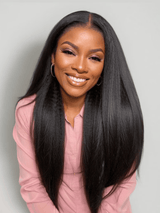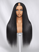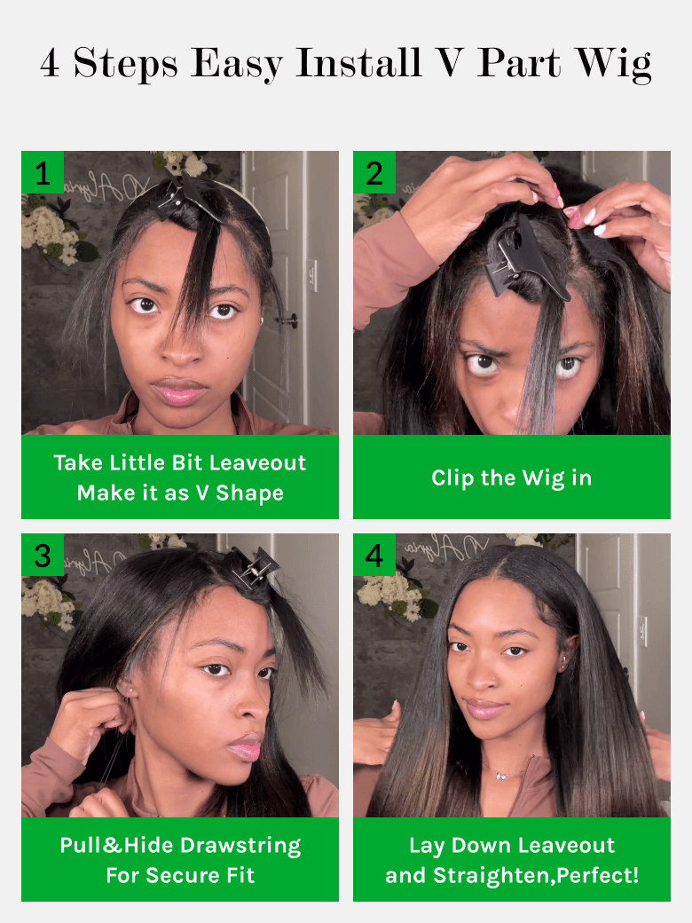 The Yaki Straight V Part Wig allows you to wear your own real part with leave out and no lace. Unlike a lace wig, there are no little lace holes to try to conceal.