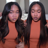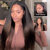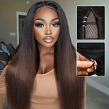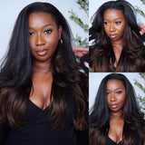 $100 OFF | Code:SAVE100 Klaiyi Ombre Chestnut Brown Color Yaki Straight EasiContour V Part Wigs Human Hair Clip in No Sew in No Glue Wig