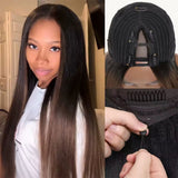 Home | $100 OFF | Code:SAVE100 Klaiyi Ombre Chestnut Brown Color Yaki Straight EasiContour V Part Wigs Human Hair Clip in No Sew in No Glue Wig