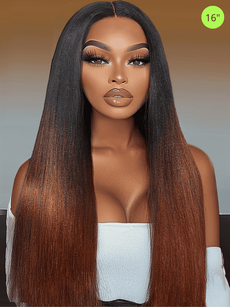 Ombre Reddish Brown with Dark Roots Vpart Yaki Straight