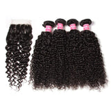 Pack: 4 Bundles Peruvian Jerry Curly Hair Weave Bundles with 4*4 Lace Closure, 7a Grade, 100% Human Hair