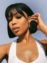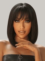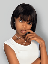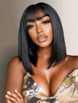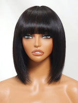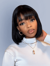 Klaiyi Straight Bob Wig With Blunt Cut Bangs Glueless Human Hair Wig Flash Sale |