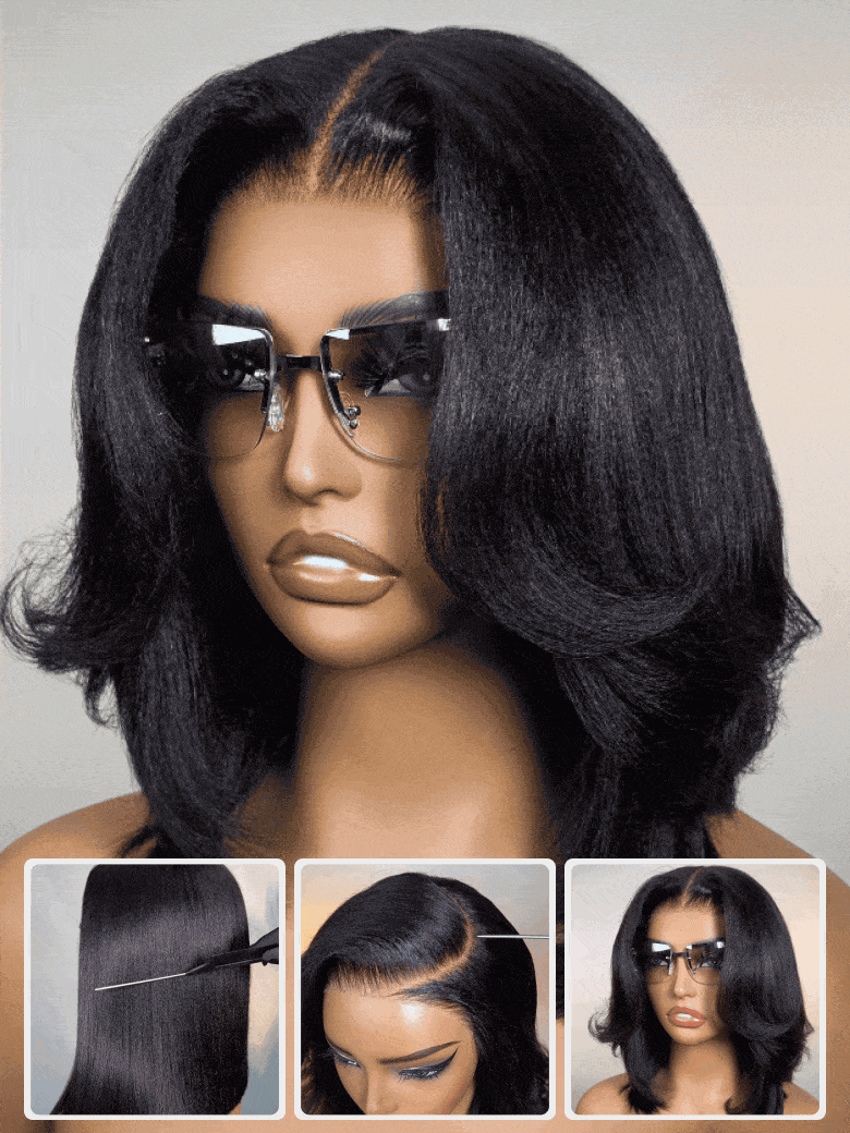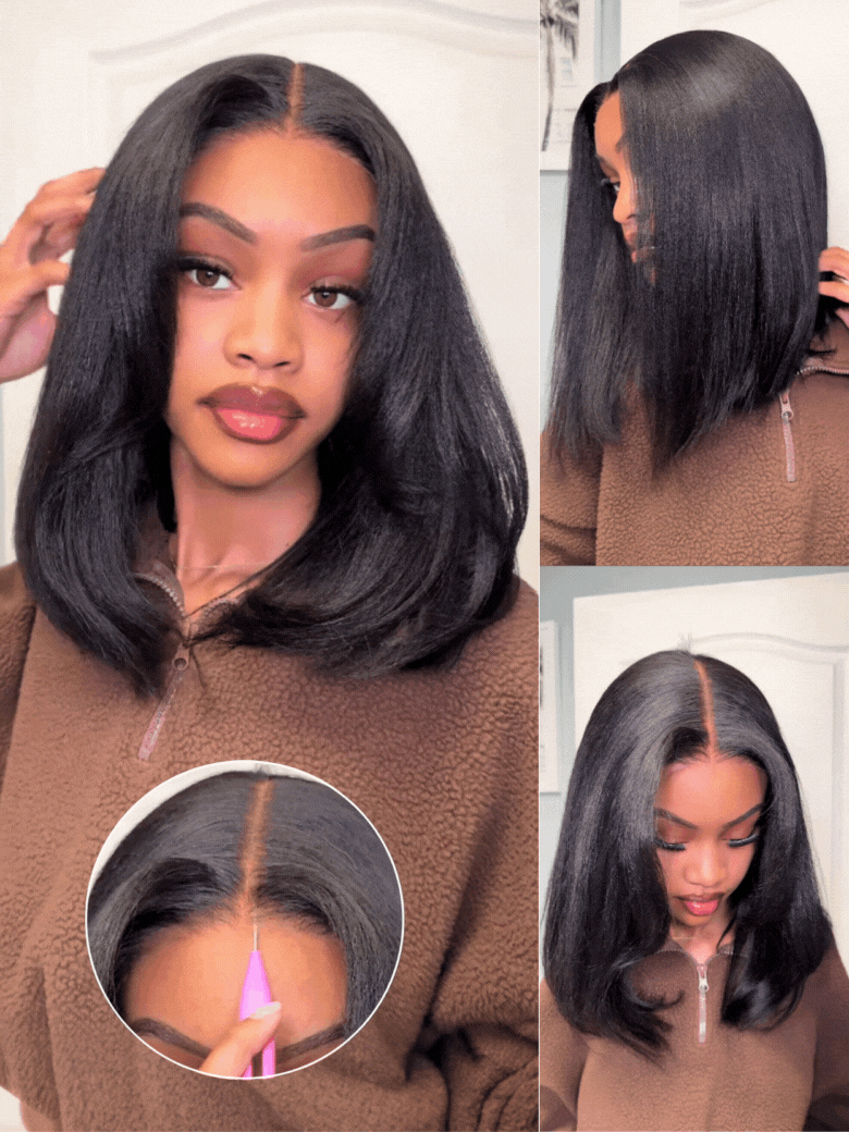 Klaiyi Yaki Straight Bob 13x4 Pre Everything Put On and Go Glueless Wig Pre-Cut Lace Wig Beginner Friendly |
