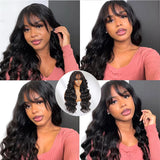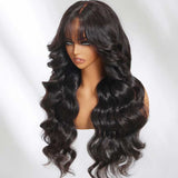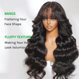 Item: Klaiyi 13x4 3D Fluffy Body Wave Lace Frontal Wig with Bangs & Layers Pre everything Put on and Go Human Hair Wigs