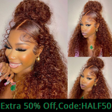Extra 50% Off,Code:HALF50 | Klaiyi Jerry Curly Auburn Copper Color 13x4 Lace Front Wig