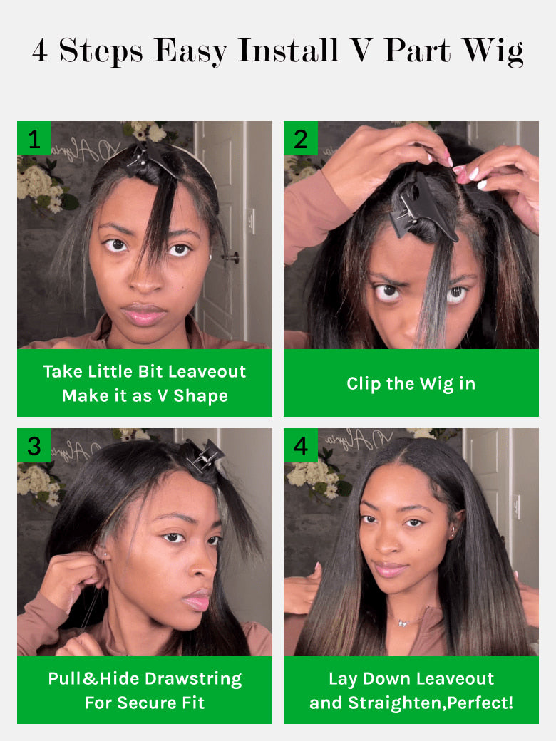 Vpart wigs are effortless to put on and don't require a lot of prep and time to install. V part wigs are great protective styles to protect your natural hair.