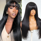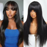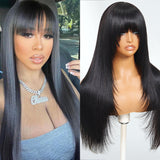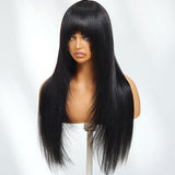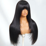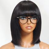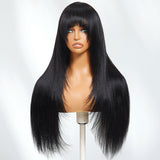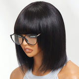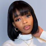 | Product Name | Klaiyi Straight Bob Wig And Yaki Straight Human Hair Glueless Wig With Blunt Cut Bangs Natural Black Color |