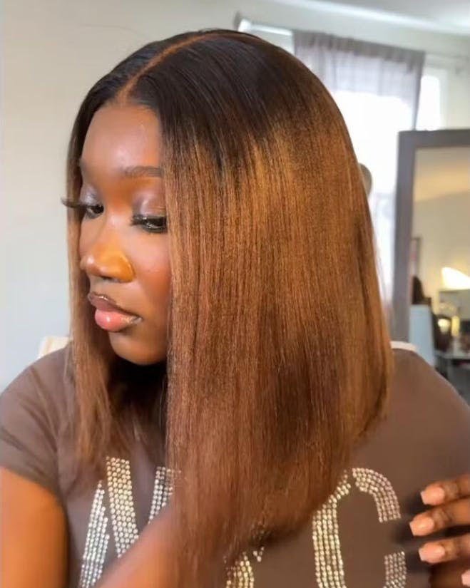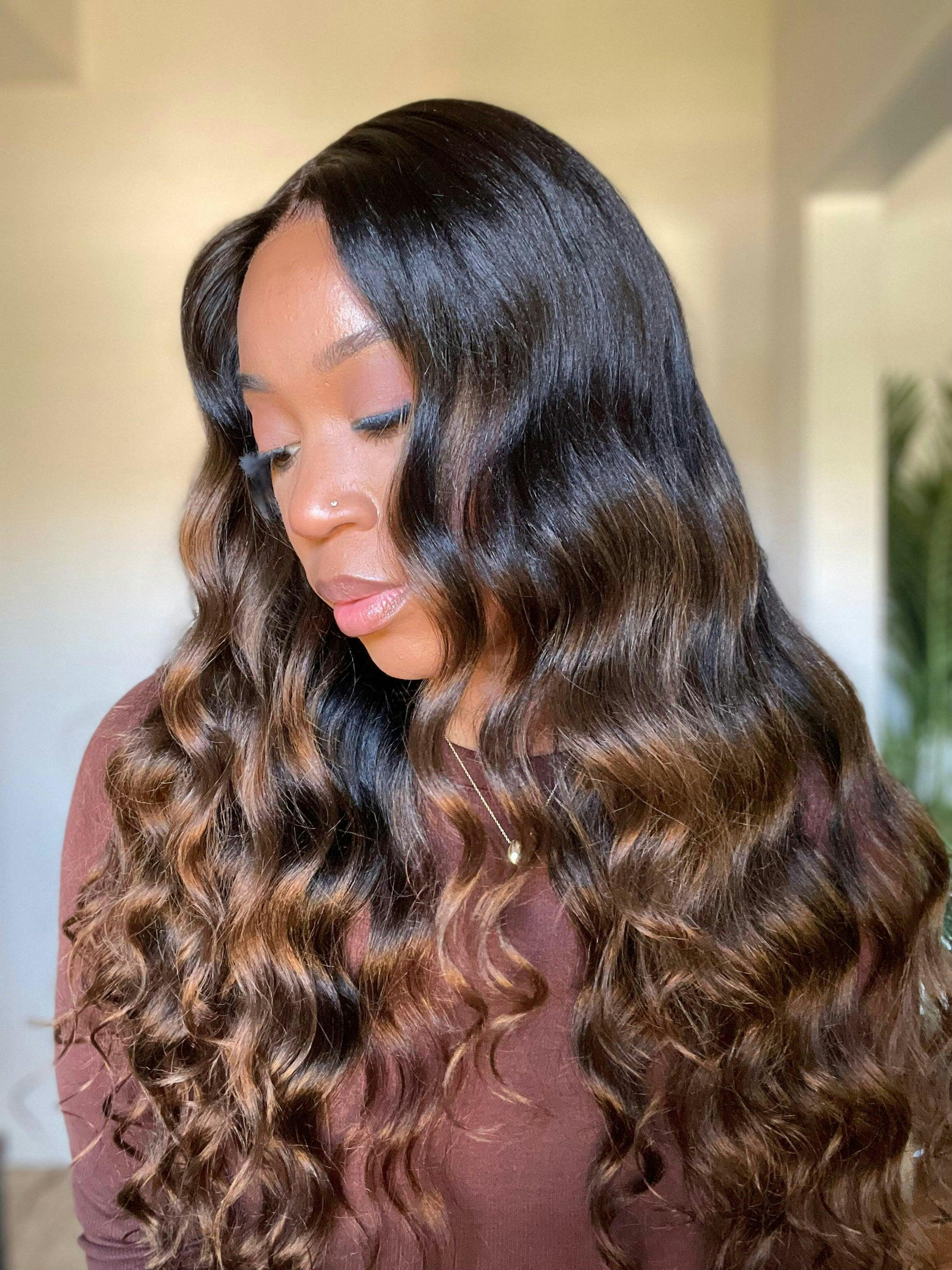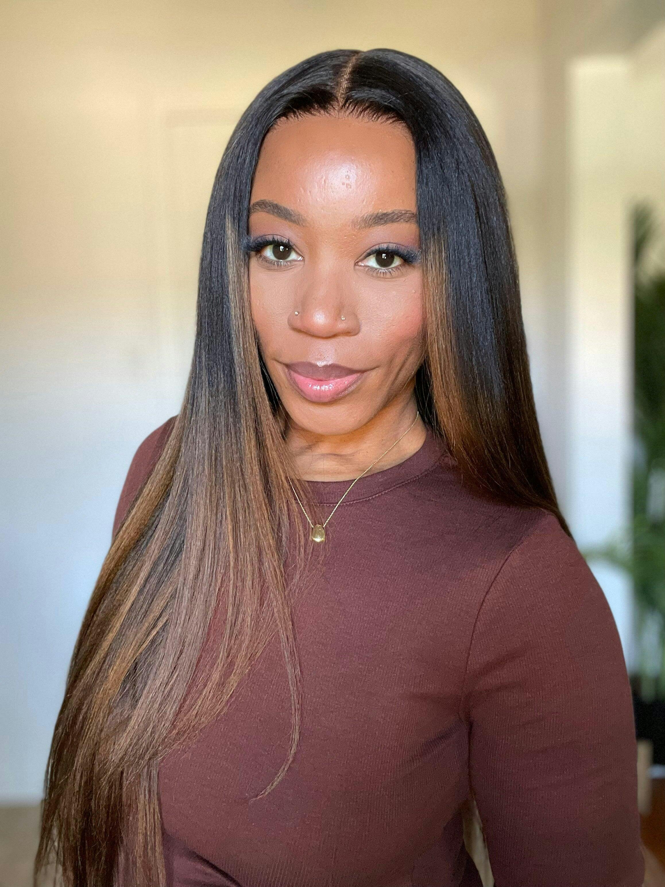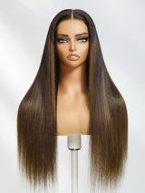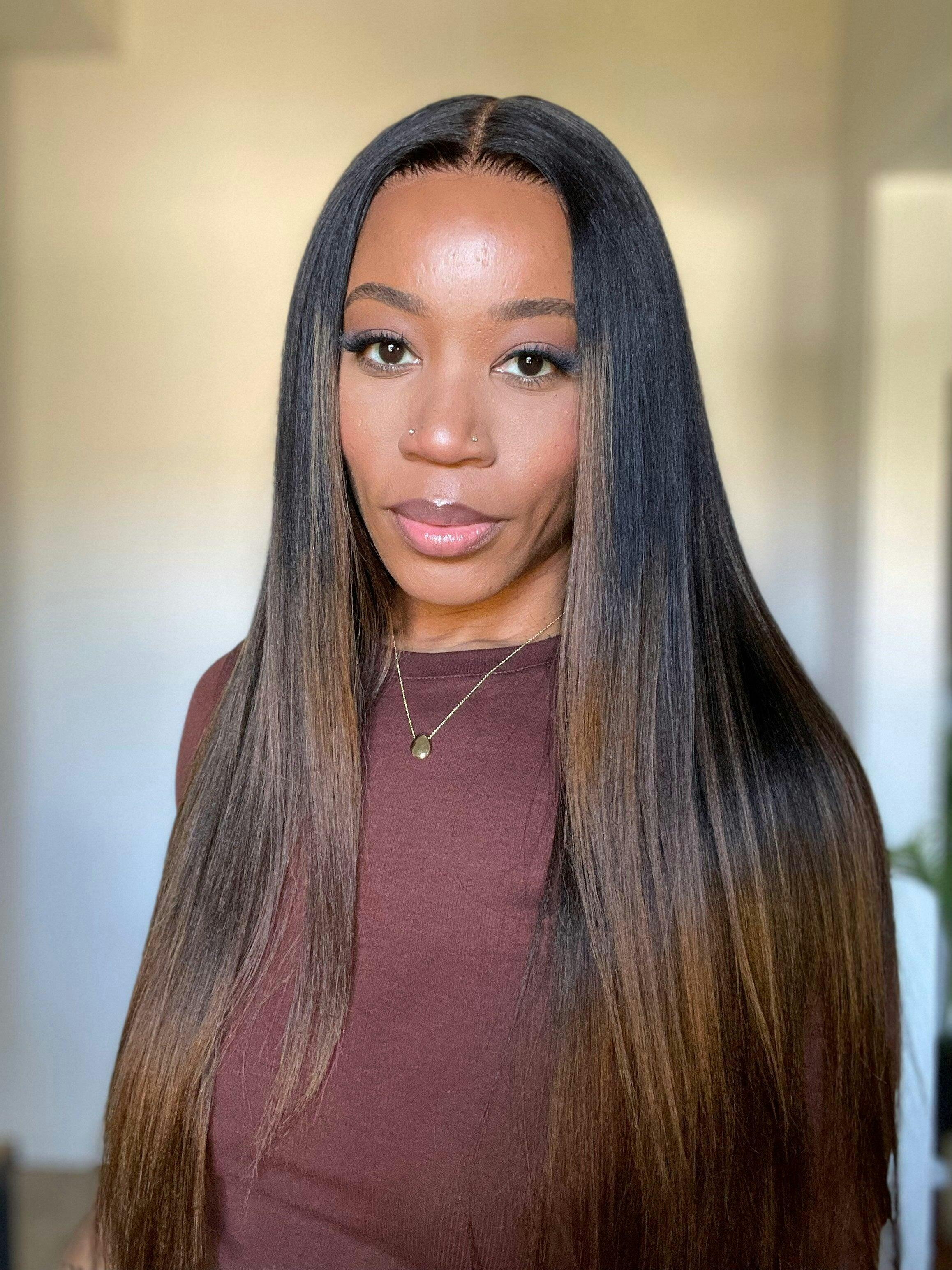 | Product Name | Klaiyi Yaki Straight Put On and Go Glueless Wig 7x5 Bye Bye Knots Ombre Chestnut Brown Wigs With Invisi Drawstring |
