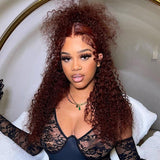 | Product Name | Klaiyi Pre-Cut Lace Wig Put On and Go Reddish Brown Color Jerry Curly Human Hair Wig Flash Sale |
