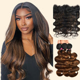 Flash Sale Klaiyi Brown Balayage #1b/30 Highlight Color Body Wave 3 Bundles With 13x4 HD Lace Frontal Human Virgin Hair Deal