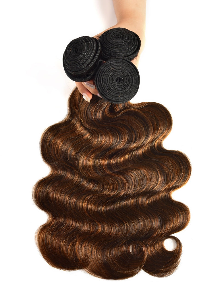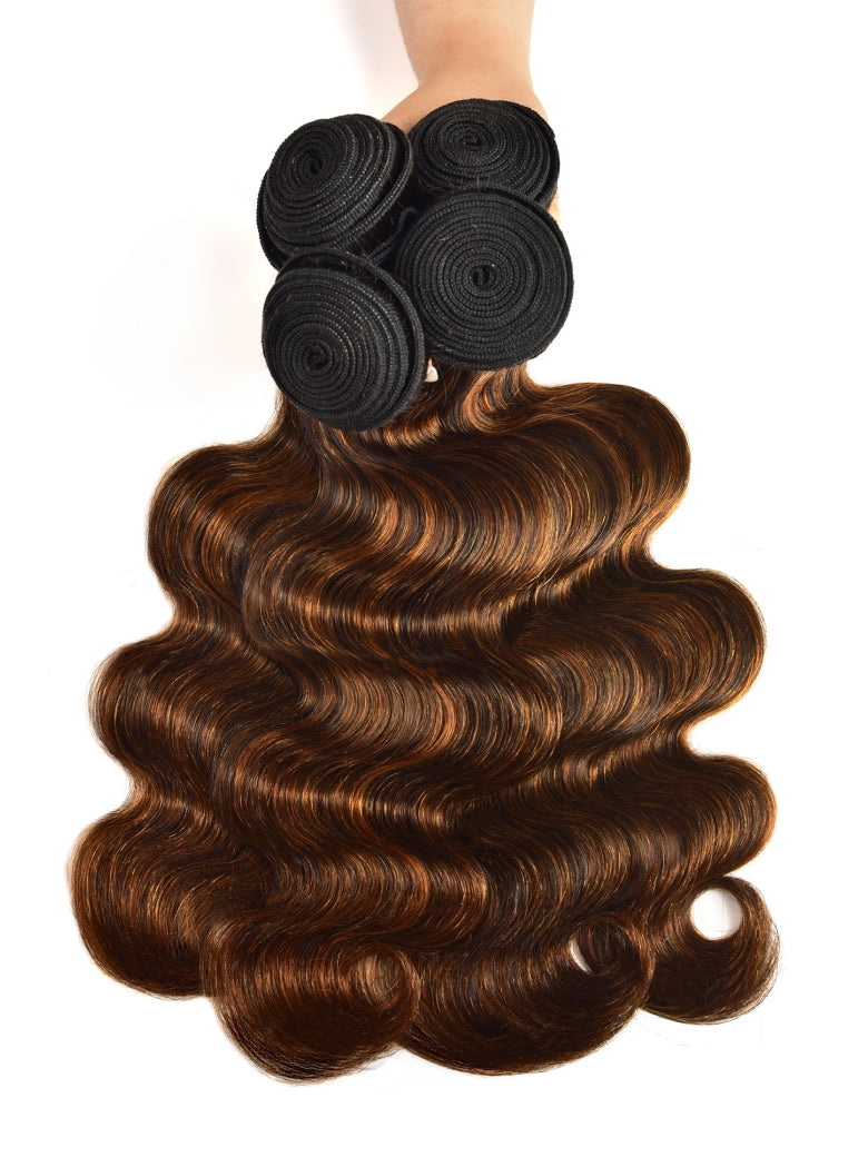 Item: Klaiyi Brown Balayage #1b/30 Highlight Color Body Wave Human Virgin Hair Bundles Deal