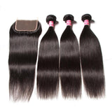 Pack: 3 Bundles indian Straight Hair with Closure