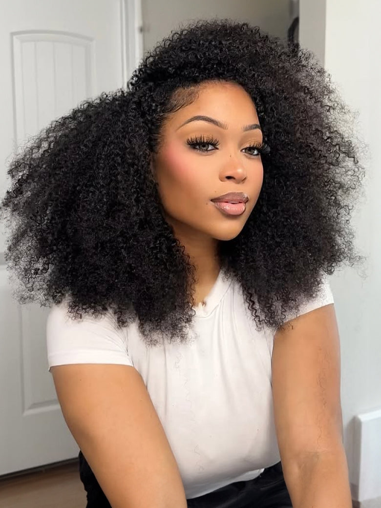 Item: Klaiyi Kinky Curly 3 In 1 Flip Over 3/4 Half Wig with 4C Kinky Edge &Flexi-Fit Drawstring Beginner Friendly Wig Flash Sale