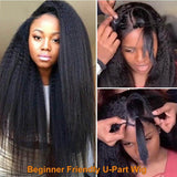 Hair Material: 100% Virgin Human Hair Wig, Virgin Kinky Straight Hair, Can be Dyed and Ironed by your favor Invisible U Part Half Wig With Clips.
