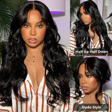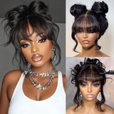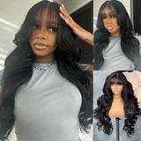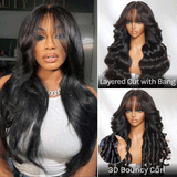 Item: Klaiyi 7x5 and 13x4 3D Fluffy Body Wave Lace Frontal Wig with Curtain Bangs & Layers Pre everything Put on and Go Human Hair Wigs