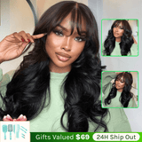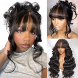 Item: Klaiyi 13x4 /7x5 3D Fluffy Body Wave Lace Frontal Wig with Bangs & Layers Pre everything Wigs Human Hair Flash Sale