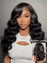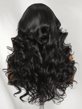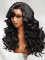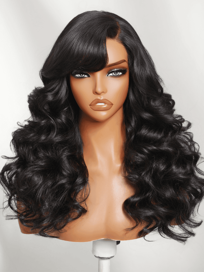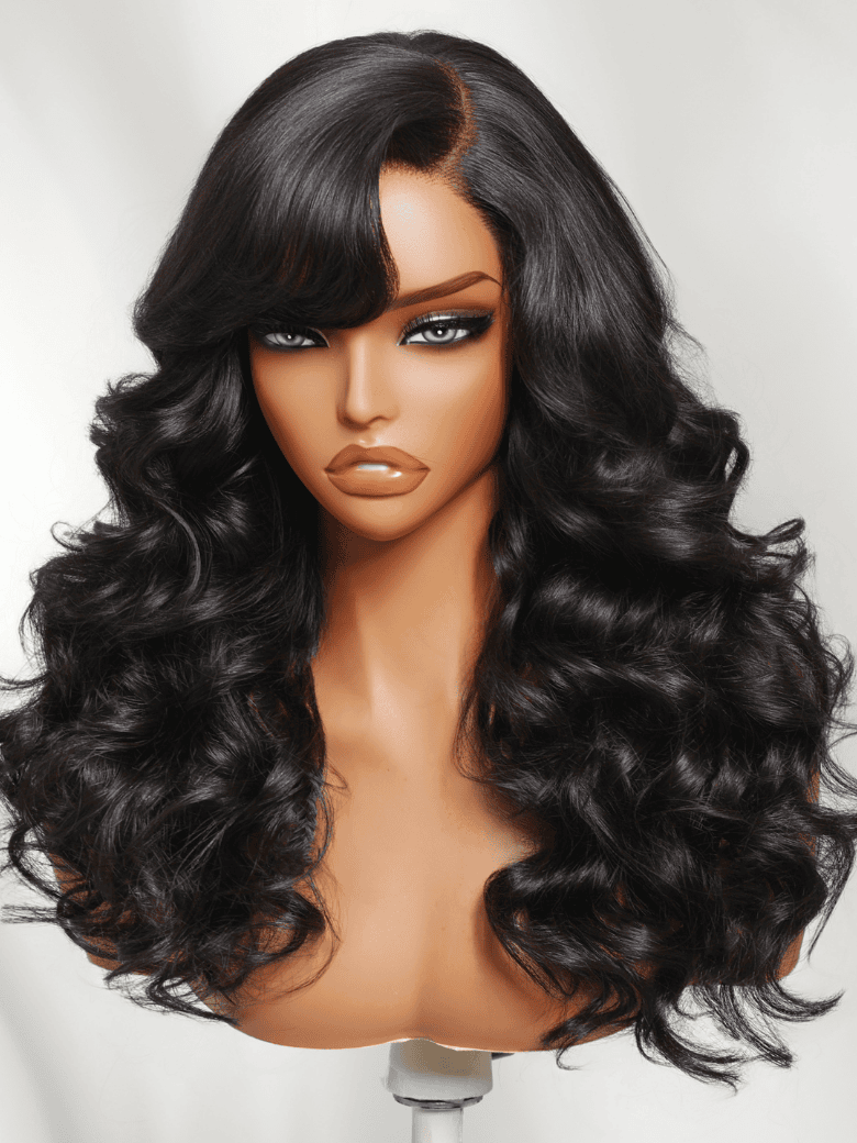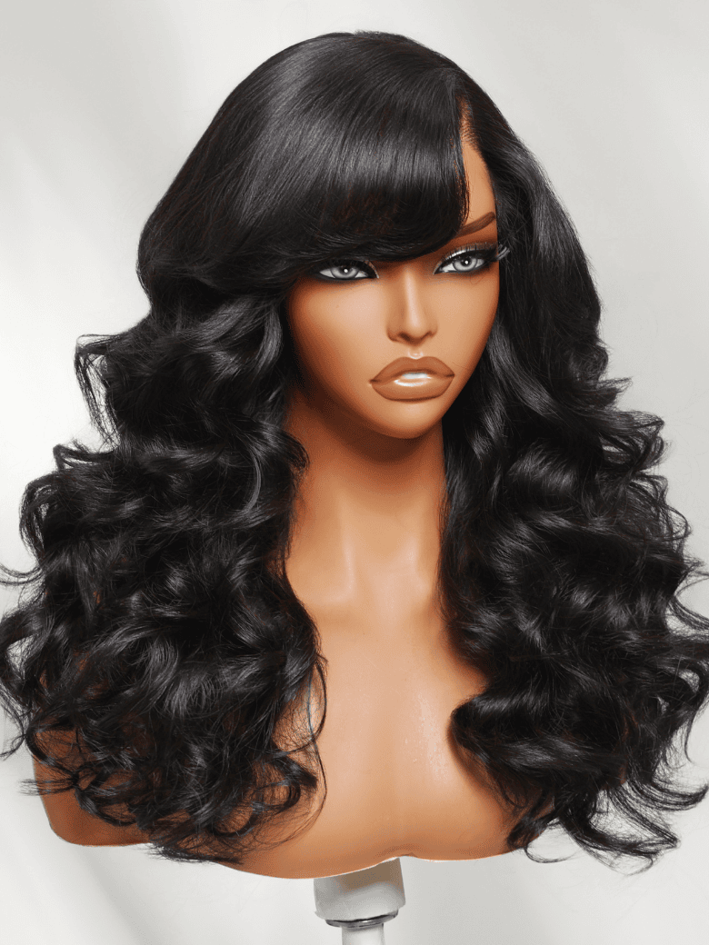 Klaiyi 7x5 Glueless Lace Wig Retro Glam Curls Feathered Layers 200% Density Human Hair Salon-Finished Look Side-Swept Bangs