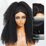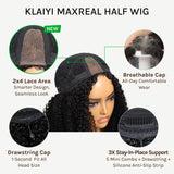 Item: Klaiyi Afro Curly Maxreal 2x4 Lace Part Half Wig Put On and Go Kinky Curly Human Hair Wigs with Invisi Drawstring