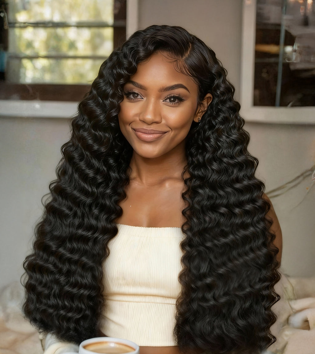 Texture: Deep Wave hair bundles, Natural Hairline, Soft, Comb Easily, Minimal Shedding, No Tangling