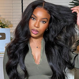 Item: Klaiyi Bye Bye Knots 7x5 Yaki Wavy Bye Bye Knots Wig Soft Flip Out Bang Curl Style Put on and Go Glueless Human Hair Wigs