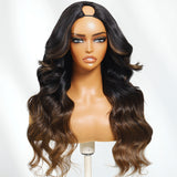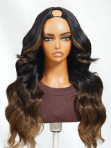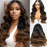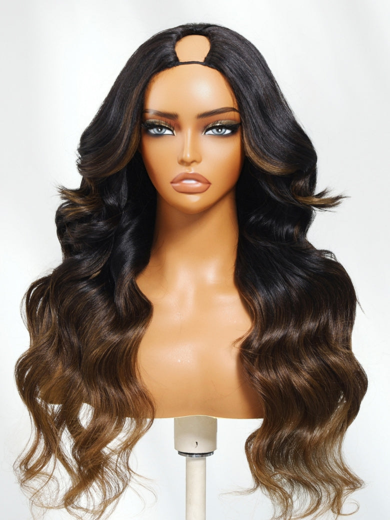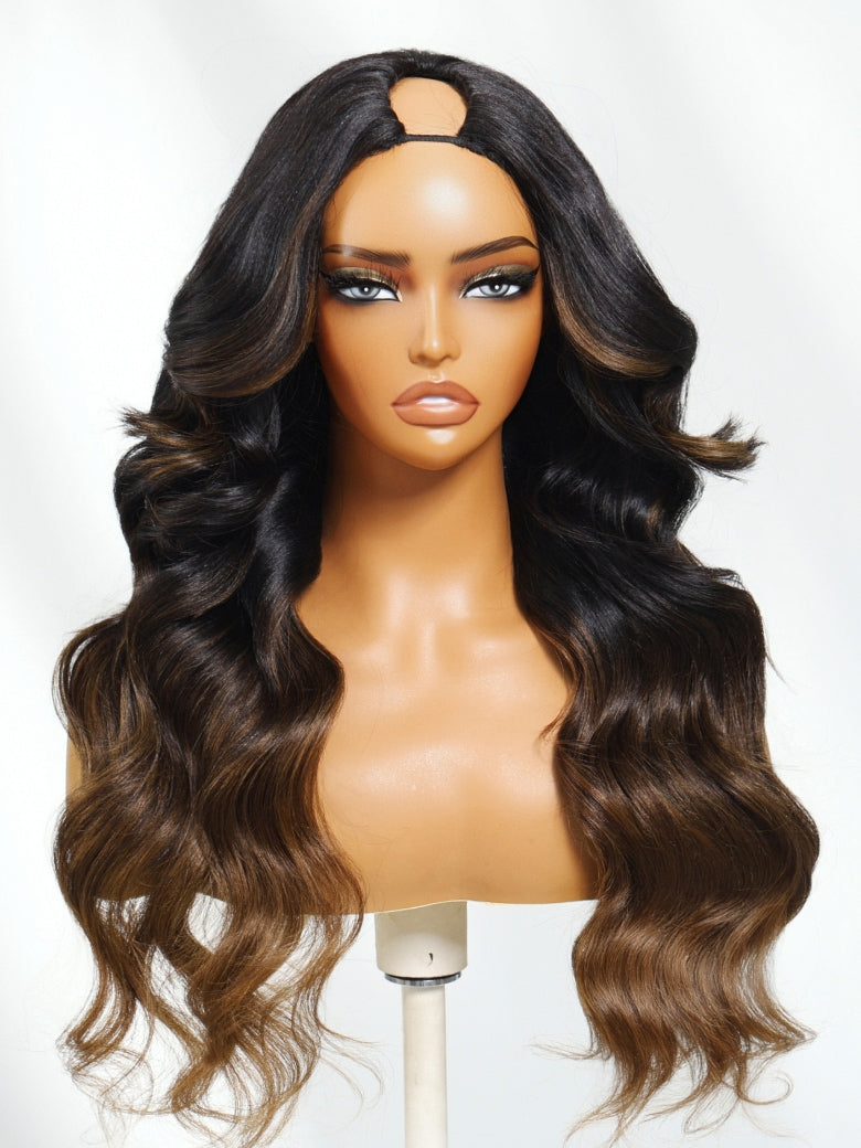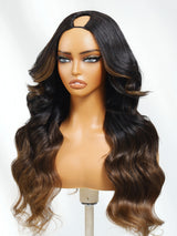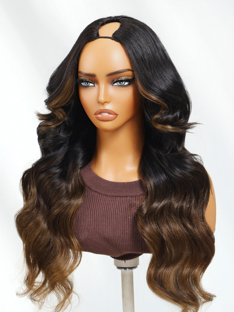 Item:Klaiyi EasiContour™ V-Part Wig Ombre Chestnut Brown Loose Body Wave Wig Real Scalp Glueless Wigs