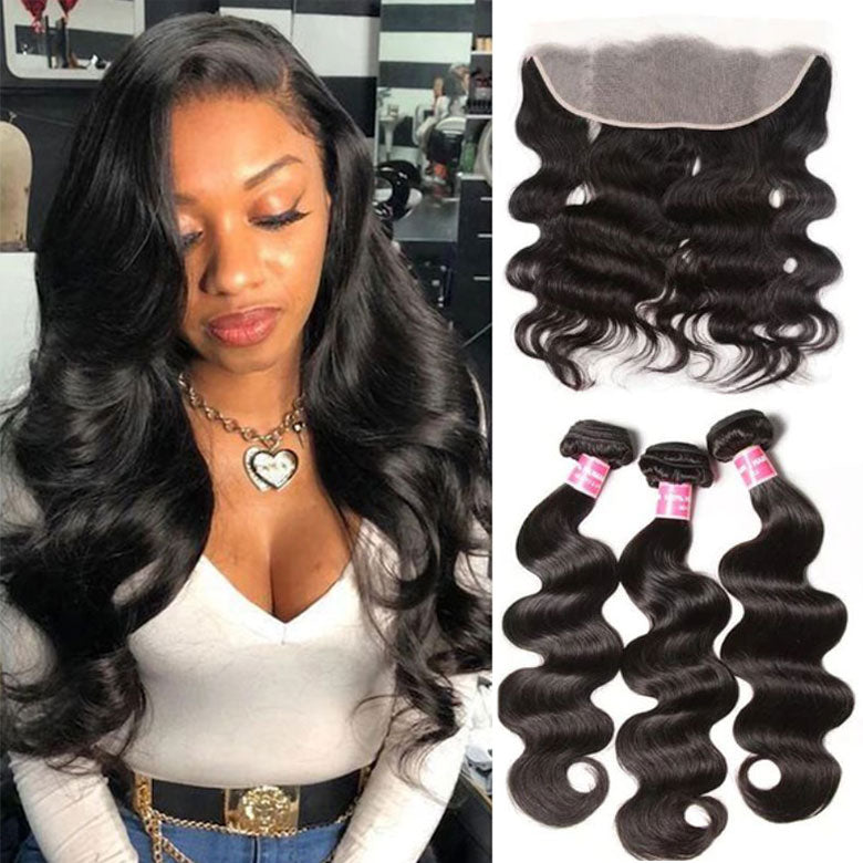 Pack: 3 Bundles Body Wave Hair Bundles with 1 Piece Lace Frontal Closure
