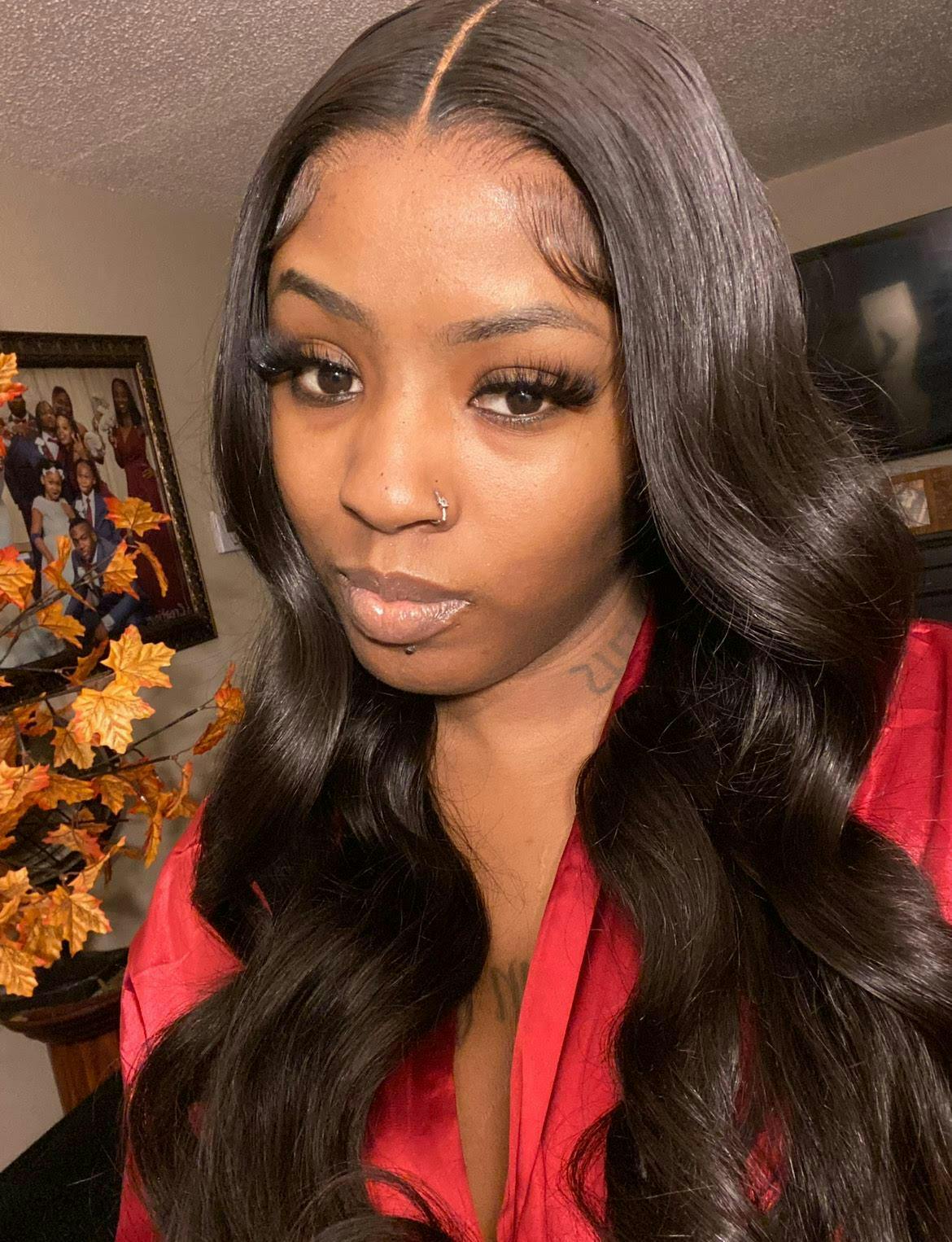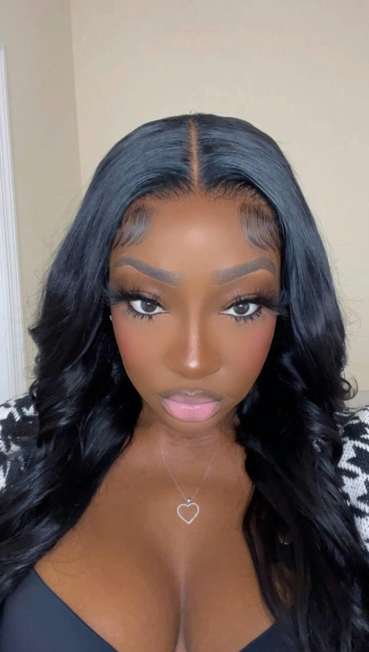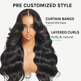 | Product Name | Klaiyi Hair HD Real Scalp™ Wig with Curtain Bangs 13x4 Invisible Lace Frontal Body Wave Wig Natural Black Color with Drawstring |