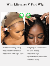 The InvisiBlend™ V part Wig 3.0 allows you to wear your own real part with leave out and no lace. Unlike a lace wig, there are no little lace holes to try to conceal.