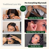 | Lace Wig Type | 13x4 Pre-everything Wig,Pre Cut,Pre Plucked,Pre Bleached Knots,Pre Styled Baby Hair,Pre Ear Tab Tape |