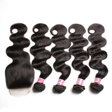 Pack: 4 Bundles Body Wave Hair Bundles with 1 Piece Lace Closure