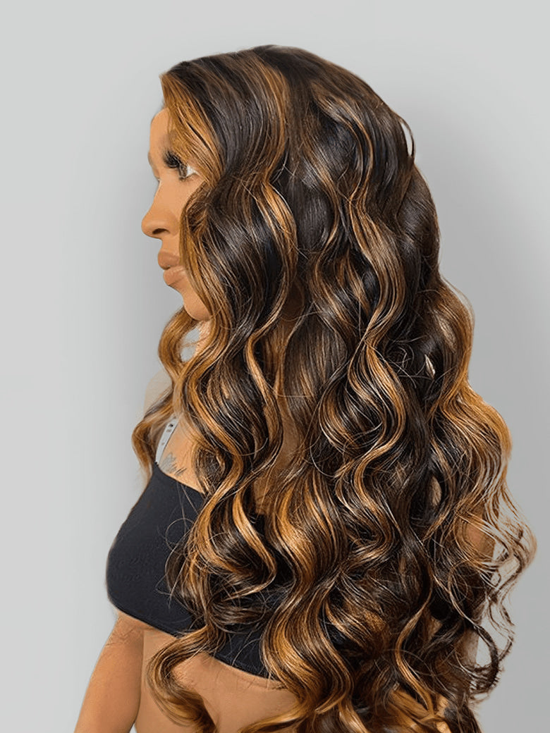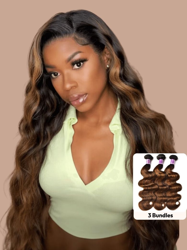 Item: Klaiyi Brown Balayage #1b/30 Highlight Color Body Wave Human Virgin Hair Bundles Deal