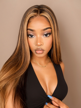 Item: Klaiyi Ombre Dark Roots Balayage Color Silk Straight Human Hair Weaves Bundles Deal