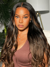 Item:V Part Yaki Straight Wig Ombre Chestnut Brown Lifesaver Glueless Human Hair Wig