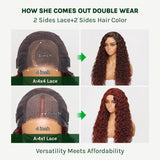 2 Sides Hair Color: 4*4 Sides:Ombre Black Cherry 4*1 Sides:Reddish Brown Color