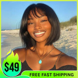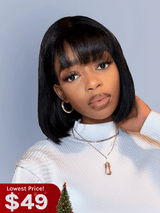 Klaiyi Straight Bob Wig With Blunt Cut Bangs Glueless Human Hair Wig Flash Sale |