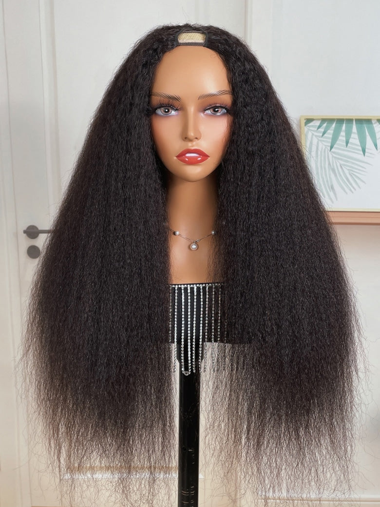 Item: Klaiyi U Part Wig Brazilian Hair Kinky Straight Wig Natural Color 100% Human Hair