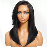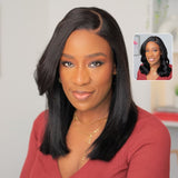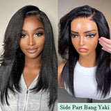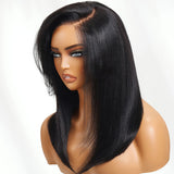 Klaiyi Yaki Straight Silk Press Bob Wig With Side Bangs 7x5 Pre-Bleached Natural Looking Glueless Wig Human Hair |