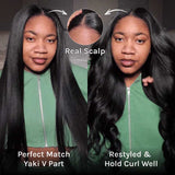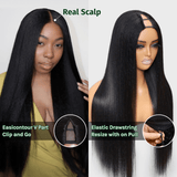 The Yaki Straight V Part Wig allows you to wear your own real part with leave out and no lace. Unlike a lace wig, there are no little lace holes to try to conceal.