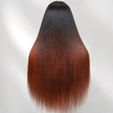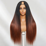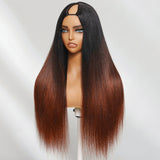Item:Klaiyi Yaki Straight V Part Wigs Ombre Reddish Brown with Dark Roots Upgrade Invisi Drawstring