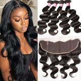 Pack: Malaysian Body Wave Virgin Hair 4 Bundles with Frontal Closure Natural Color